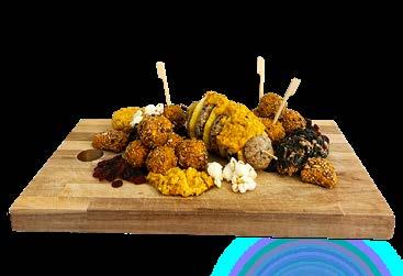Smelt frituurvet, laat afkoelen en voeg vogelzaad toe. Vorm gehaktballen, snijd een appel in stukjes en rijg ze om en om aan een satéprikker.