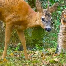 Dit soort ‘spitsers’ (zonder zijtak) worden ook wel moor denaars genoemd. Dodelijk in het gevecht met een andere reebok. Maar hoe komt deze jonge bok aan die ene cen trale geweistok? Een kenner van Vereniging Het Ree bestu deerde de beelden en liet het volgende weten. “Als je goed kijkt, zie je dat de aan zet van de rechterstang een korte stompe, enigszins woe kerde opzet heeft. Mogelijk is tijdens de groei van het gewei vanaf januari, hier een bescha diging opgetreden. Dat heeft geleid tot een afwijkende ont wikkeling naar volledig gewei. Of dit zo blijft, is afwachten. Jonge reeën werpen tegen het eind van het najaar of begin van de winter hun gewei af. Als de beschadiging niet blij vend is, zal deze bok naar alle waarschijnlijkheid een nieuw gewei ontwikkelen met twee stangen.”