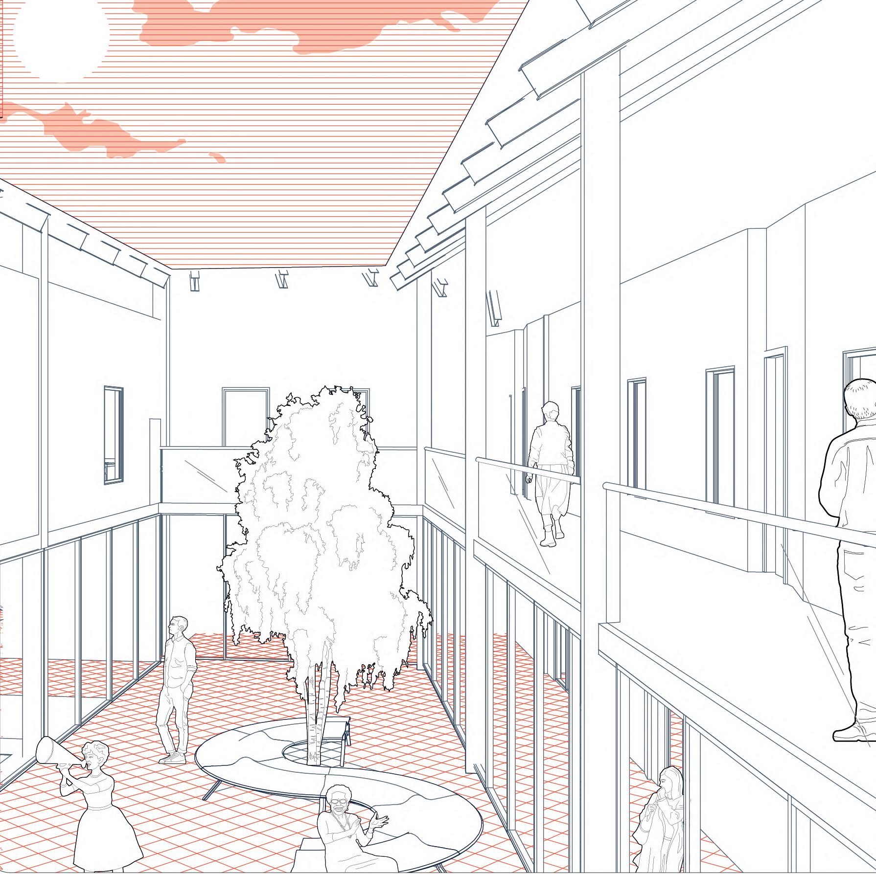 For the Cascina, the main footprint and structure were maintained, however, implementing new uses according to the architectural program. For the new building the implementation of residential areas that interact with communal spaces was crucial in the design, allowing private life to co- exist with services for other inhabitants of the community. Finally, one of the main aims of the project is the creation of effective public space for the community, in this case the design proposed different qualities of public space, such as the main public square, the inside lobby and the inner patio with a more private character.