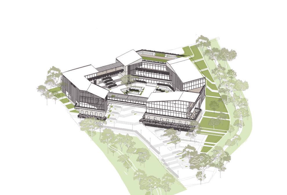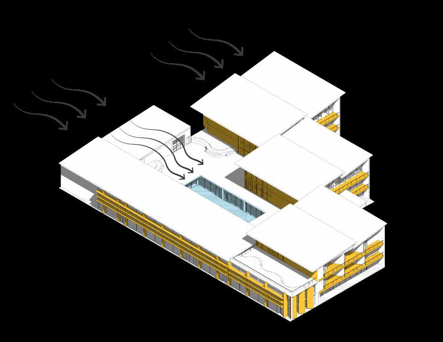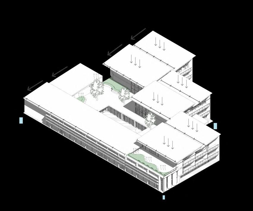 North side angled roof and classrooms typology