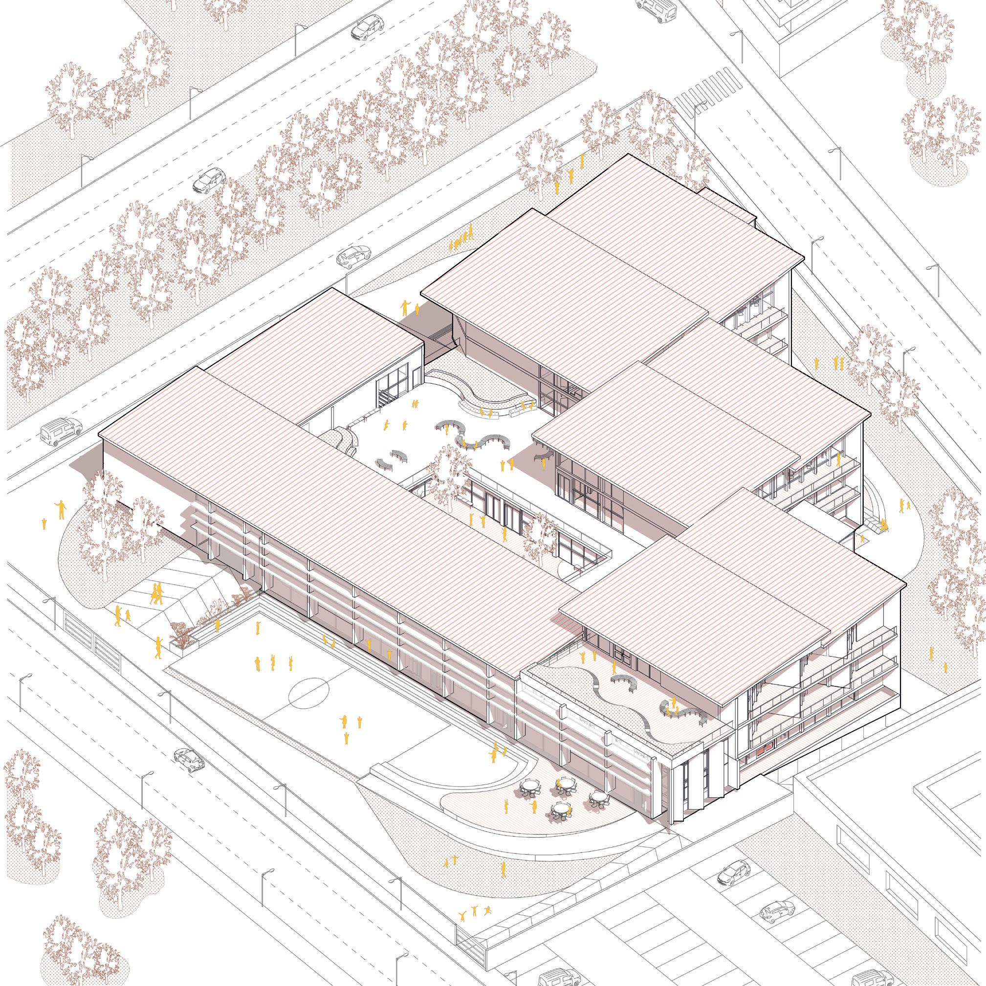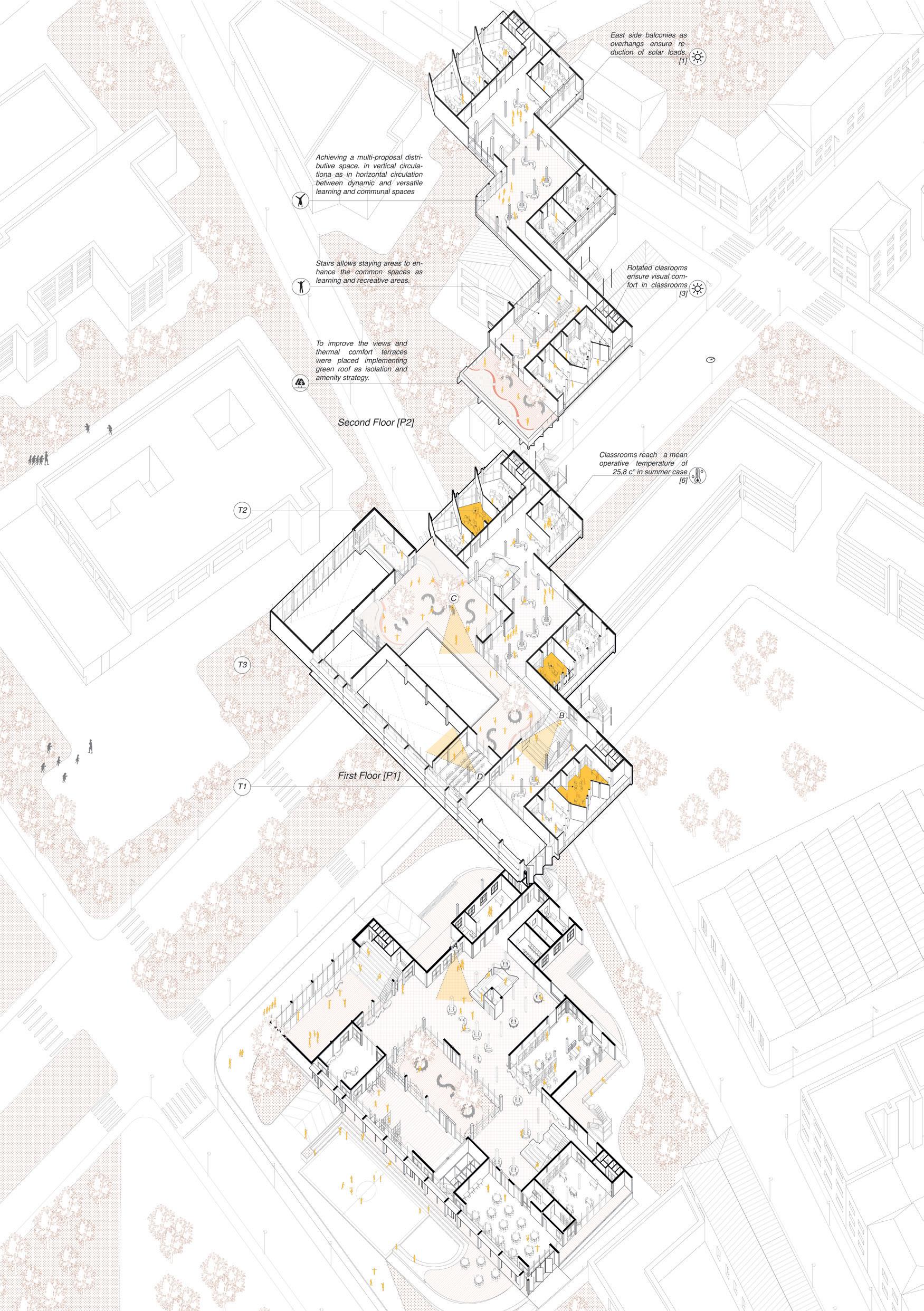 The general aim of the retrofitting project is to improve and enhance the experience of the users through the redesigning of the school building distribution and its plot, in terms of orientation, organization of spaces and views. Equally important is boosting the indoor environment in terms of thermal comfort, energy consumption and pedagogical experience.