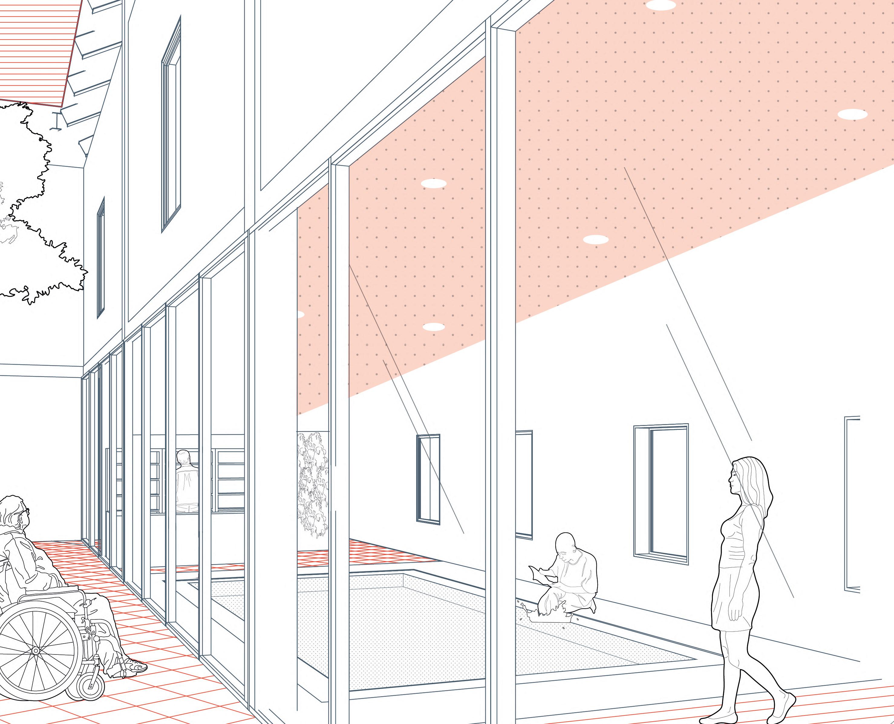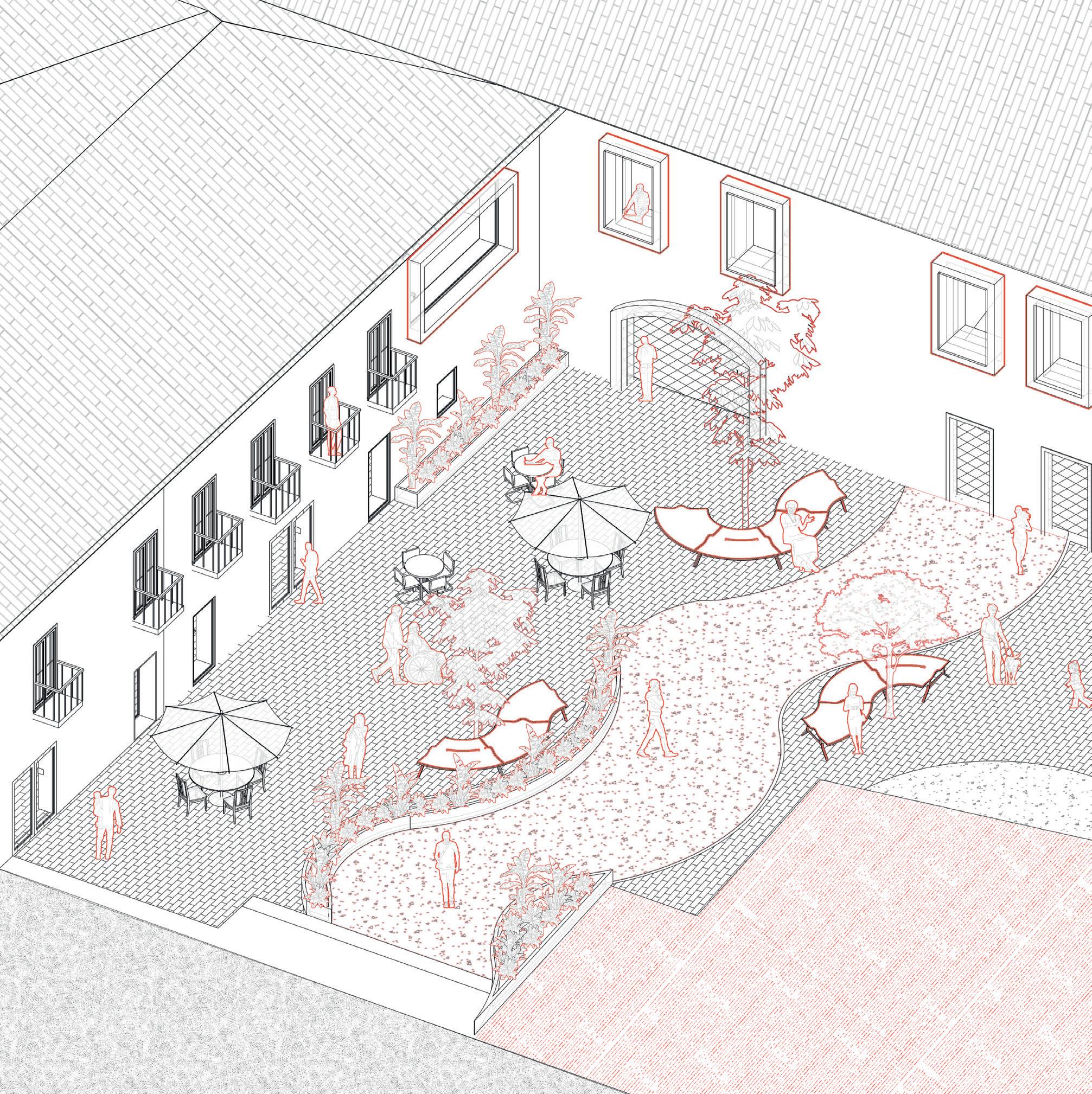 To achieve the goal, the creation of spaces for exchange and interaction between the productive/ working community and the elderly community regarding the three sustainable aspects, social, economical, and environmental was designed.