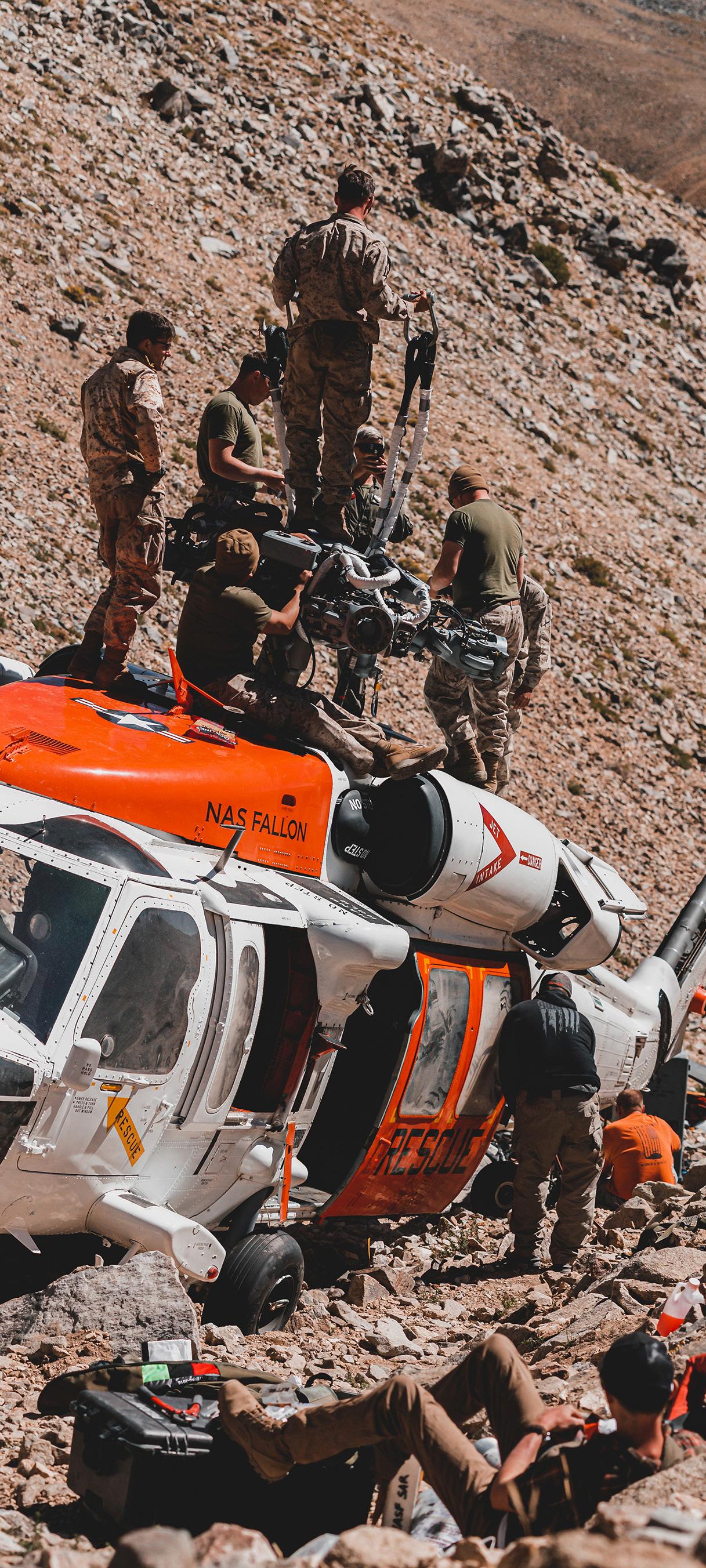 I took the flight controls and called to the crew, “We’re going down, boys! We’re going down!” The canyon was too tight to try and maneuver back the way we came, so I made a play for the middle, fighting to keep our rotor speed from slowing further. We hit the ground hard. The helicopter shook violently as the main rotor blades hit the sides of the narrow canyon walls and then exploded into thousands of pieces. I cut power to the engines and managed to engage the rotor brake. The mangled rotor blades came to an abrupt halt.