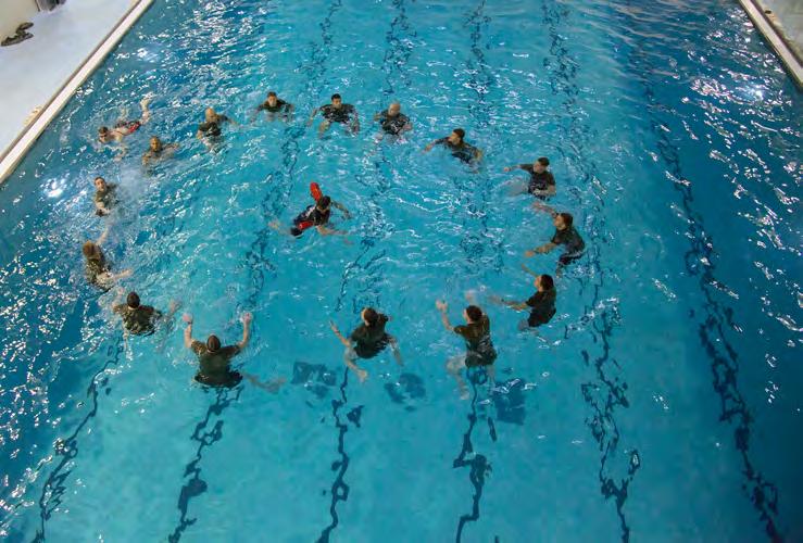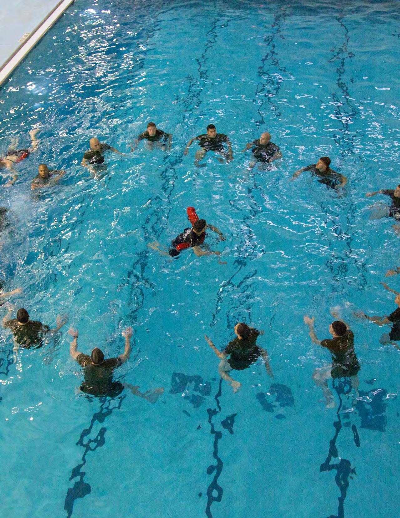 Semper Fit’s WARR program offers S3T, a Marinecentered, tiered swimming curriculum. It is built to increase water familiarity, increase the success rate for water-survival qualifications and reduce drowning incidents, and is offered to Marines free of charge.