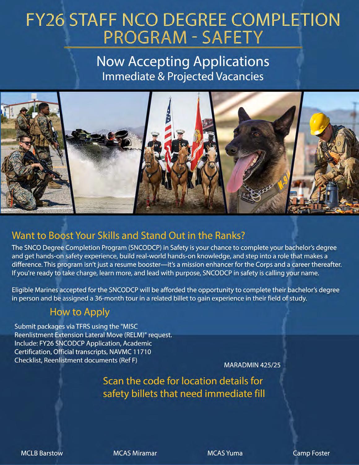 I am excited about the future of the Safety Division and its contribution to a safer, more ready Marine Corps. Together, guided by data and informed by experience, we will continue to strengthen our safety posture and ensure mission success.