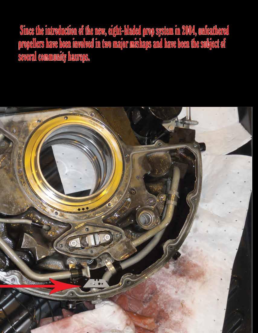 The prop system in the Hawkeye community leaves little room for error. If contaminated or leaking, a failed pump housing system can prevent the prop from feathering, which may in turn prevent the plane from landing safely. Since the introduction of the new, eightbladed prop system in 2004, unfeathered propellers have been involved in two major mishaps and have been the subject of several community hazreps.