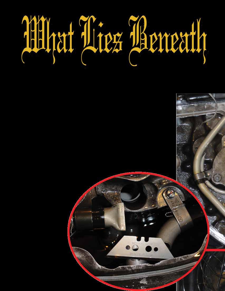 The initial removal of the prop assembly went smoothly, and it was soon laid out on the deck. As I removed the rear cover of the pump housing to replace a seal, I saw a unique piece of FOD: a razor blade sitting at the bottom of the housing. Our mechs hadn’t opened this housing before.