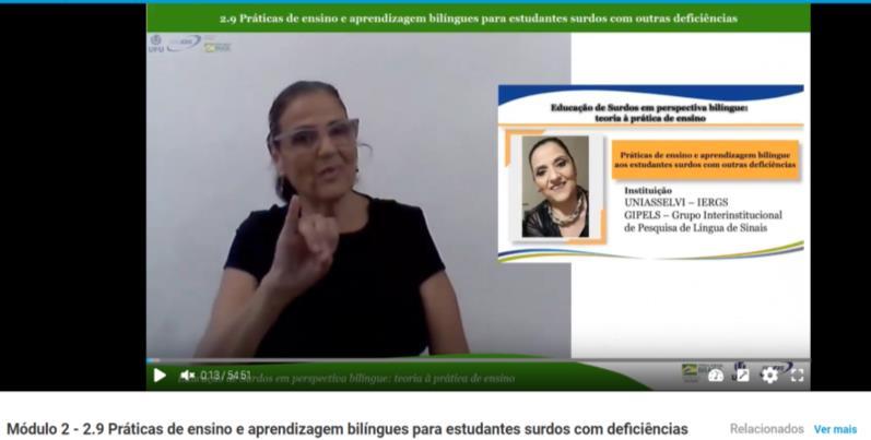 • LIBRAS: 7° Ano Ensino Fundamental Surdocegueira: https://www.youtube.com/watch?v=v2l8A4qBQZo&list =PLN3vrlnWAJelooHG3fvqhVI1Q3bYJBrK&index=25&ab_channel=Est%C3%BAdioEduca %C3%A7%C3%A3oMG
