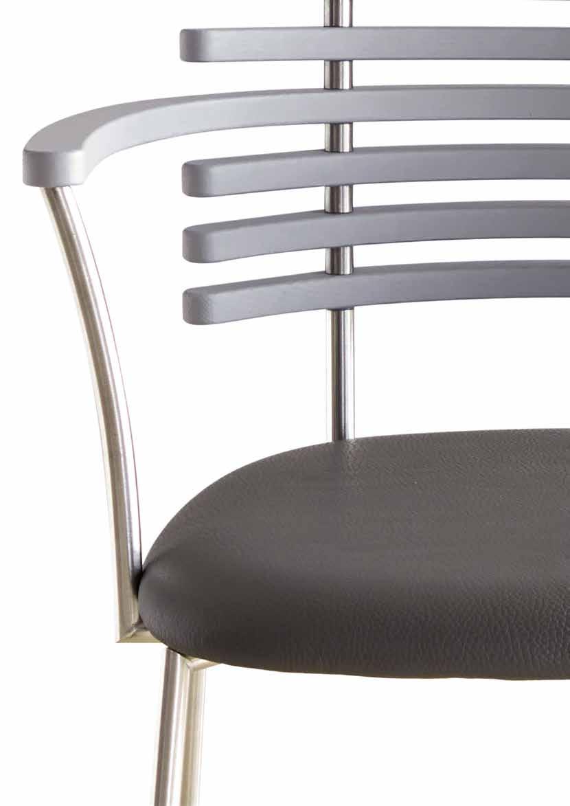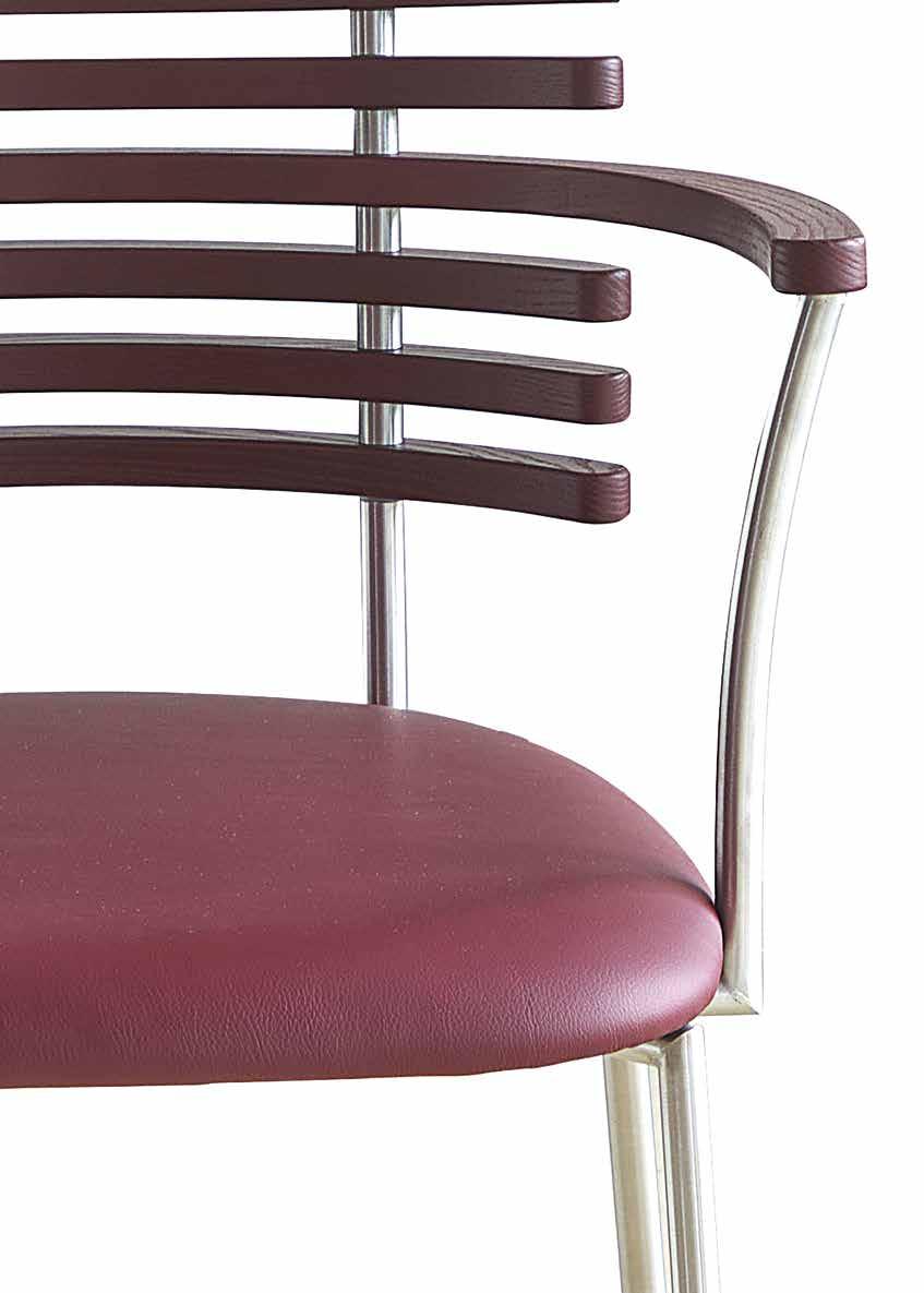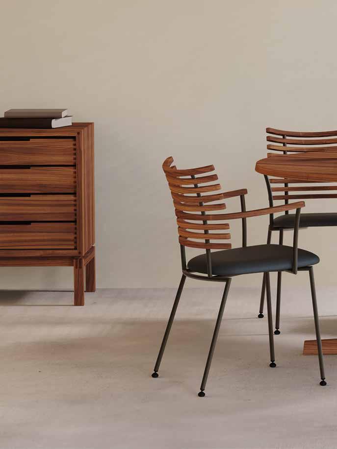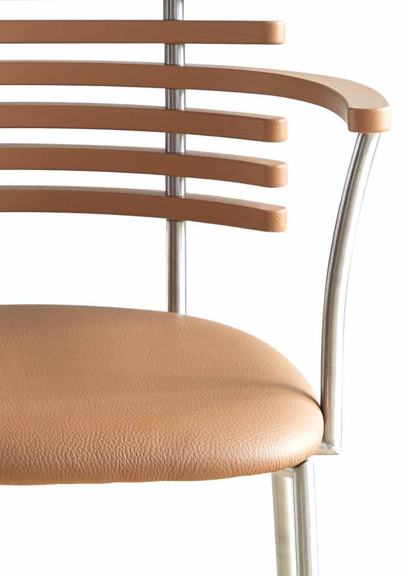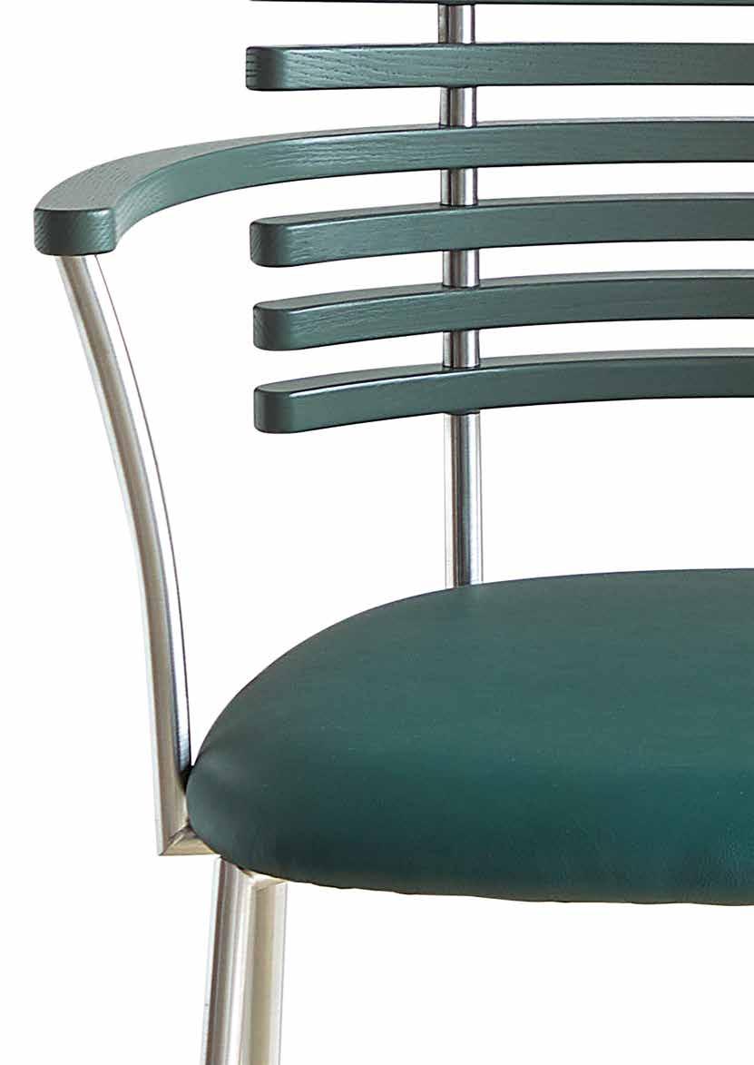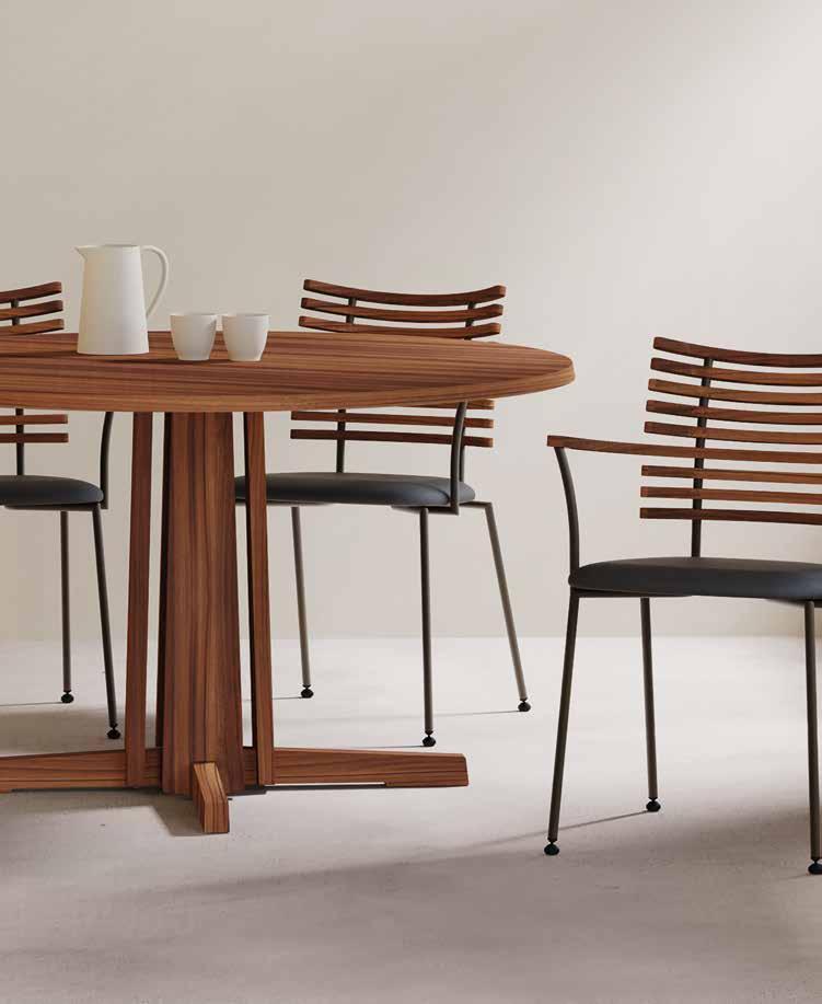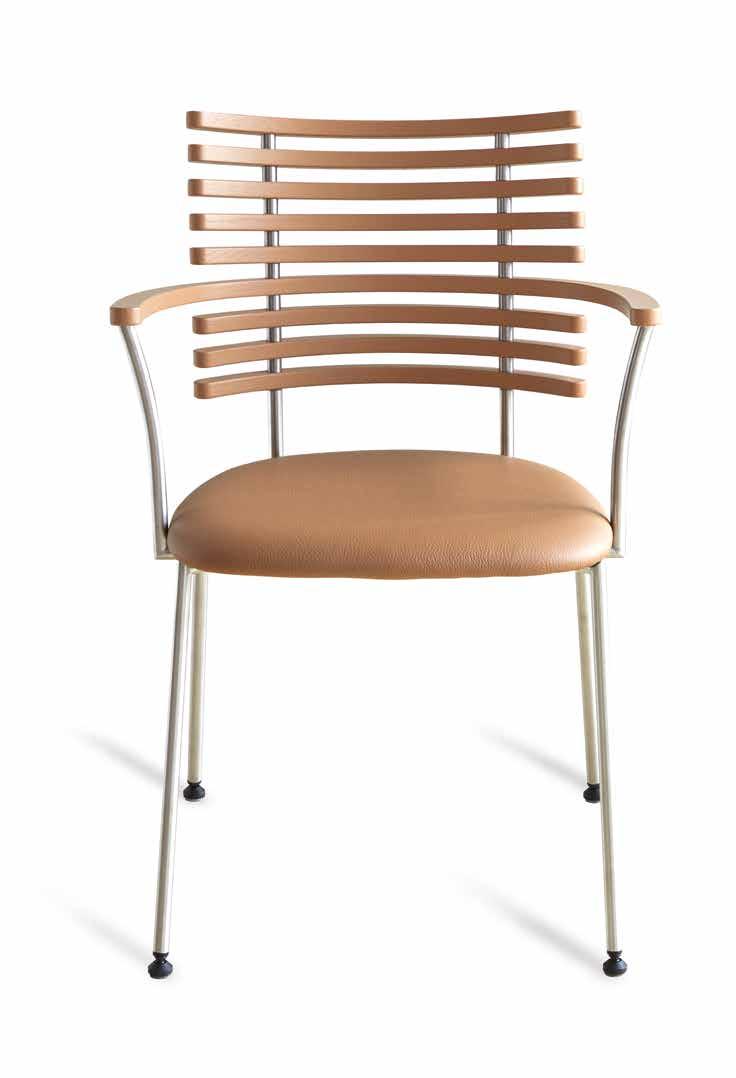 chair combines exceptional aesthetics with high seating comfort, where the steam-bent backrest in solid walnut harmonizes beautifully with the sleek stainless steel frame.