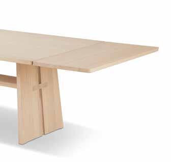 Designer Hans Sandgren Jakobsen har tænkt på detaljen i Ro langbordet, hvis behovet opstår for mere bordplads. Træk let de to stokke ud i enden af bordet for at isætte tillægspladen, og skub dem tilbage igen efter brug, så de er plan med stellet. Visuelt tilføjer stokkene karakter og finesse til bordet.