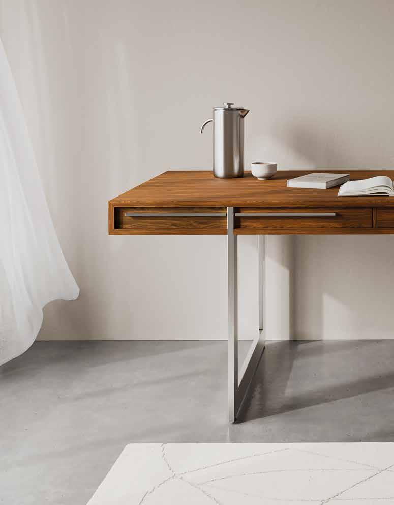 Naver Collection is the aspiration to create the good life, a blend of design, aesthetics, comfort and functionality. Crafted from high-quality materials - wood, leather, laminate, steel and Corian® - meticulously selected and innovatively conceived down to the smallest detail to form a finished piece of furniture. Durable for many years, the collection boasts a classic and timeless design that evokes a natural sense of joy. Enjoy the details of each design on the following pages. See more at navercollection.com - here, you can visualize the individual designs in 360 degrees. Change wood types, frame, and leather colors.