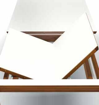 The butterfly extension in the center of dining table GM 3421 makes it easy to expand the table. The leaves gracefully fold themselves, easily and elegant, to disappear, concealed under the tabletop, in a smooth and effortless movement.