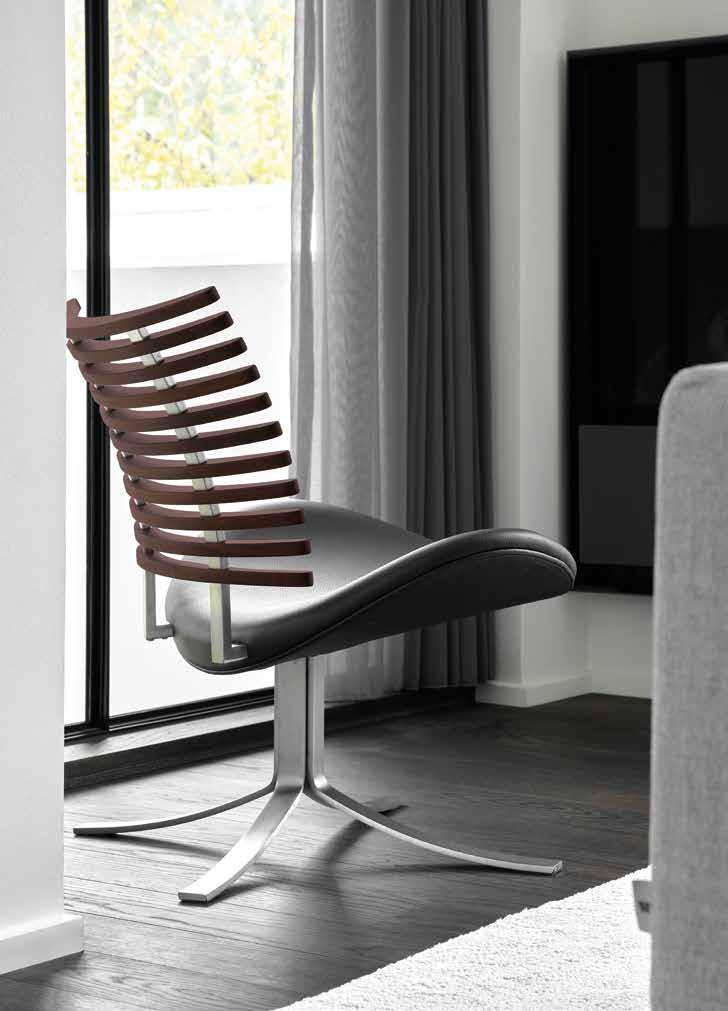 De ikoniske og dampbøjede rygsprosser tilføjer Gepard Lounge stolen et skulpturelt og ikonisk udtryk, der gør stolen helt sin egen. Stolen har dog klare referencer til Tiger stolen. Designet er contemporary, og passer ind i det stringente hjem og på arbejdspladsen.