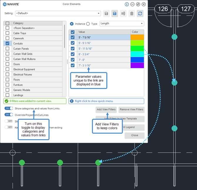 ColorElementsisnowimprovedwith thepossibilitytocreateViewFiltersfor elementsfromalinkedRevitproject.