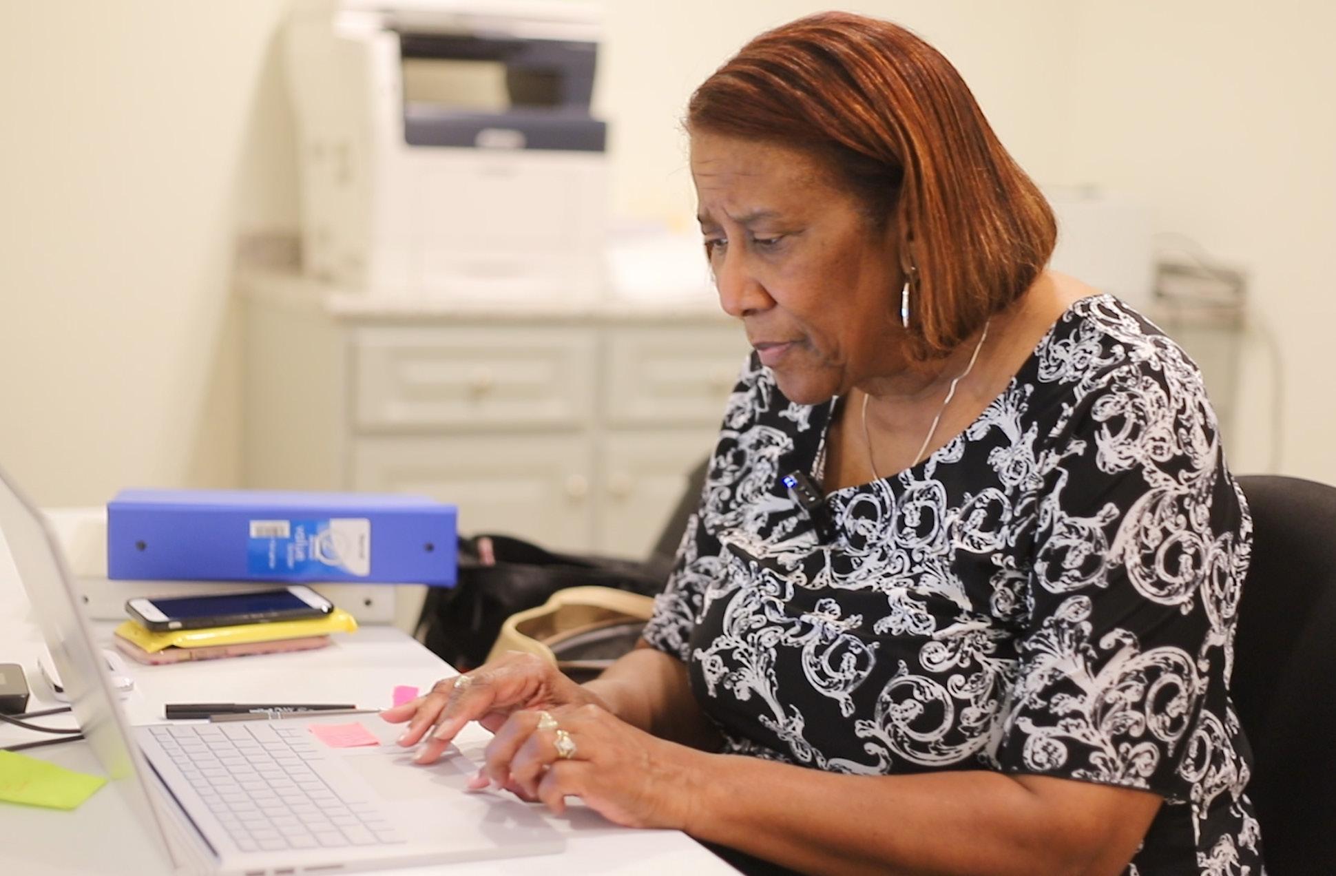 Corporate Trainer Vickie Bell reviews files during an MOR.