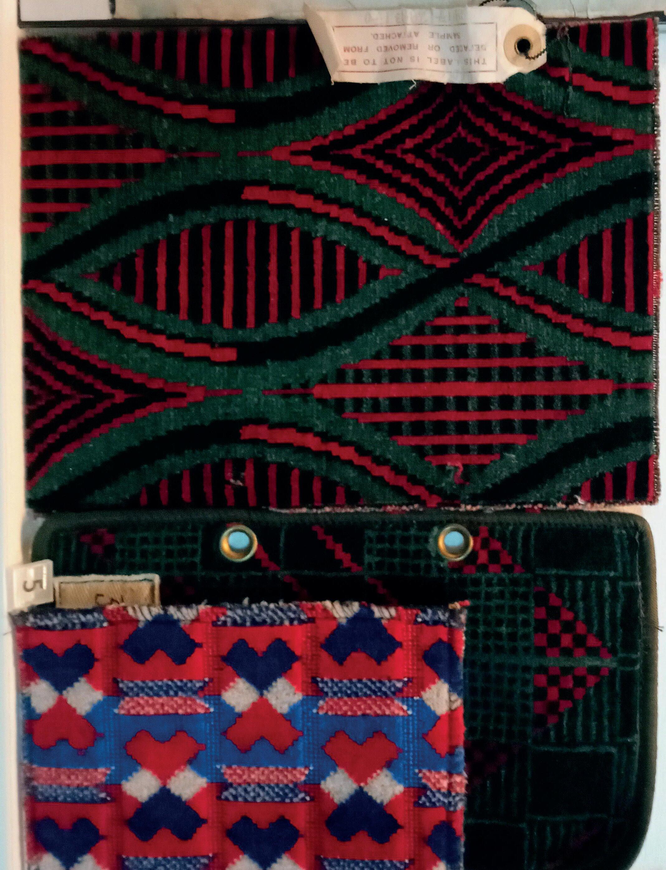 These images illustrate some of the material collated from the Moquette Archive in the London Transport Museum, where Emma was able to view a collection of around 400 samples of moquette and over 300 photographs showing how designs have evolved over the past one hundred years.