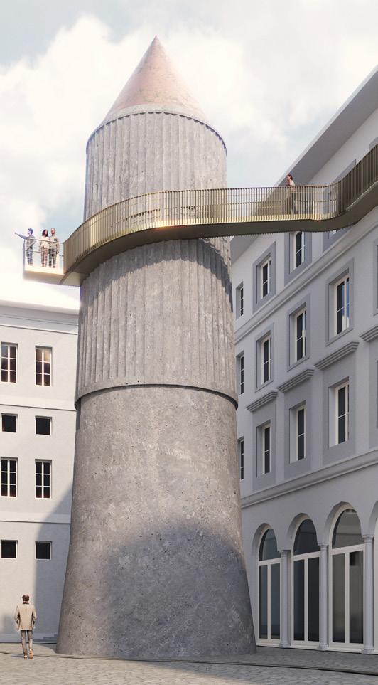 The existing condition makes it difficult for users to access the tower and requires a ladder for two-way circulation, which congests the area. The intervention proposes providing wheelchair accessibility for the entire bunker up to the first level of the tower, along with a way to evacuate the building before going up to the subsequent levels. The 4th level allows users to exit directly through the ribbon and connect them to the exit node. This minimal and lightweight intervention keeps the tower almost in its original condition without adding any structures to the ground and gives flexibility to remove if necessary in the future.