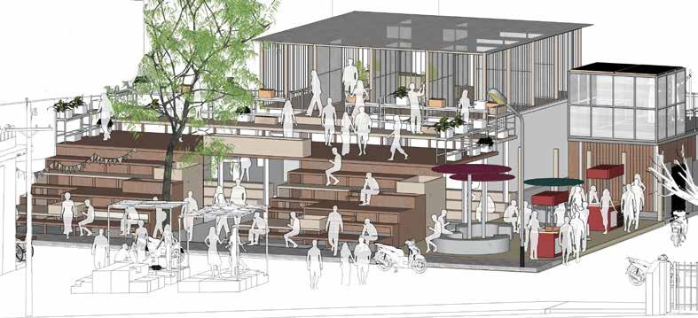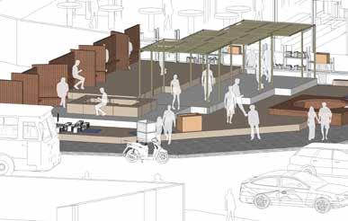 Evening activities at 5pm when space gets filled with food vendors and pedestrians How activities temporarily change at different times of the day and keep it interactive with people.
