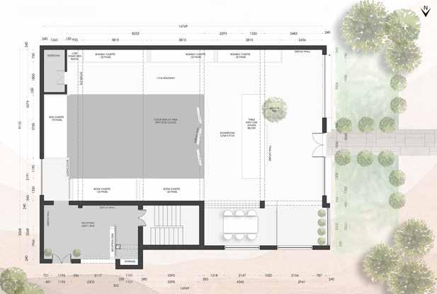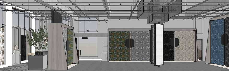 The showroom has two stories, with the ground floor being double height with exposed concrete beams and columns. Cable tray was used as a fasle ceiling with a grid design, each place was created for a certain display of tile, and tile itself was used as a material.