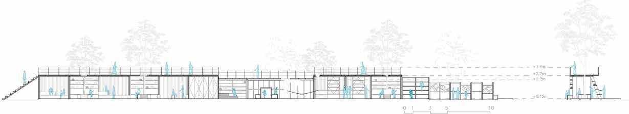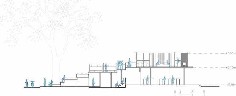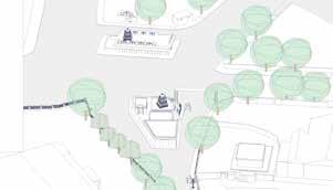 The existing condition makes it difficult for users to access the tower and requires a ladder for two-way circulation, which congests the area. The intervention proposes providing wheelchair accessibility for the entire bunker up to the first level of the tower, along with a way to evacuate the building before going up to the subsequent levels. The 4th level allows users to exit directly through the ribbon and connect them to the exit node. This minimal and lightweight intervention keeps the tower almost in its original condition without adding any structures to the ground and gives flexibility to remove if necessary in the future.