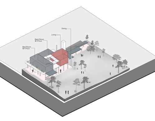 It’s an adaptive reuse project that keeps the ground floor level the same while constructing new floors on top of it and improving the existing garden with Balinese landscaping. It’s a steel and timber composite construction thats light weight and simple to install and disassemble. The location is on the outskirts of Bangalore in a calm area with plenty of vegetation, The design incorportes more greenery and a garden inside the home, allowing it to blend in with nature. It aims towards sustainable projects by preserving the current contour and creating a landscape within it, as well as reusing old steel and timber. .