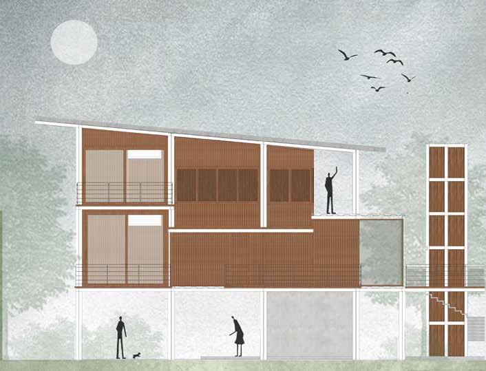 The theme of the studio is to enhance the cultural and monumental pole in Pisa that have a huge potential for international tourism that is indeed ignored - St. Paul on the bank of the Arno and the Citadel Park. The approach is to enhance waterfront in the historical context of the world, the concept journey begins with retracing the past historical elements in order to respect the memory. Keeping this in the mind the existing bridge was redecorated to serve as a landmark and to enjoy the views of Arno river, a strong direct axis is created between the two existing towers along with the arrangement of modular student housing lineraly instead of tall buildings which is obstructing the connection presently.
