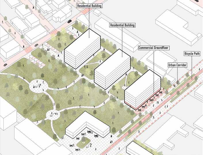 Creating an experimental neighborhood, moving without a car, and incorporating a people-friendly concept all sought to create a self-sufficient and sustainable neighborhood. By designing a new urban corridor with social housing, a community center, and market spaces, we aim to make this district more active and lively by attracting a diverse range of people..