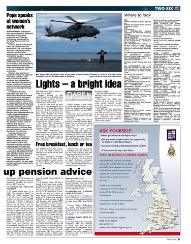 Lights – a bright idea WE ALL know that it’s dark on a flight deck at night. Imagine working in that environment on a pitching deck with the sea crashing over the sides while trying to lash a rotors running helicopter down. If you’ve ever tried to keep track of all the personnel on a flight deck or a dispersal at night then you will have found at some point that you lose at least one body even though you know where they last were, even when they are wearing hi-vis jackets you still need a light source to illuminate the reflective strips. The Royal Navy Innovation Team, Dare, decided it was time to shine some light on the problem, literally. The team approached a manufacturer to provide some lights that could be mounted on personnel so that they can be seen and if possible identified from a distance.