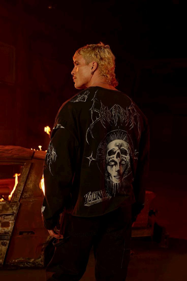 Un llamativo gráfico inspirado en tatuajes en la parte posterior. Cortes de socorro en el cuello. Estas camisetas de corte holgado ofrecen una comodidad inigualable y una silueta relajada. Perfecto para añadir un toque especial a tu look casual.