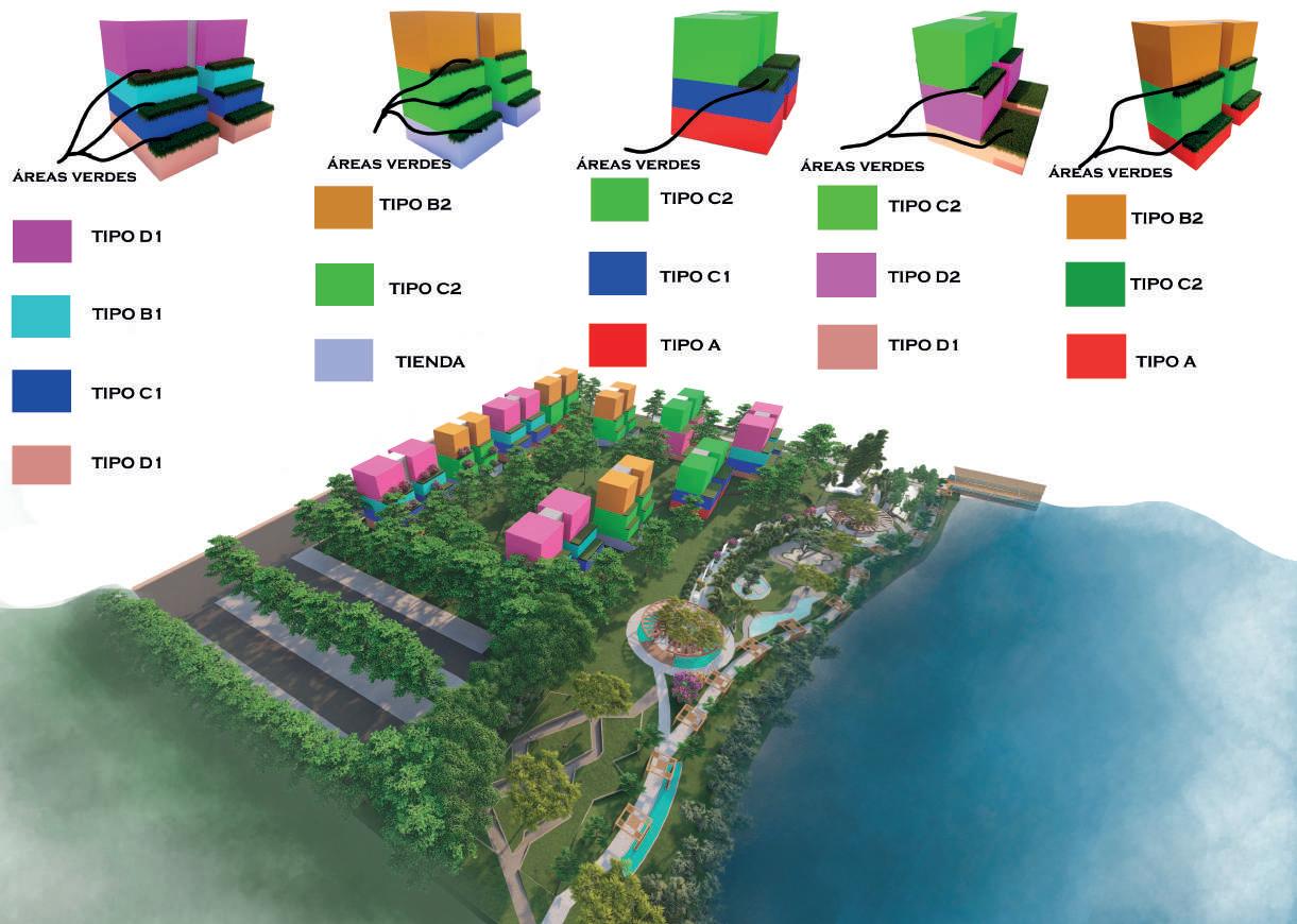 En está oportunidad realizamos un proyecto de una vivienda Social junto a mis compañeros de ciclo, conformado por 60 viviendas distribuidas en 7 tipologías entre flats y dúplex, la propuesta fue de recuperación y tratamiento del espacio público en la ribera del río Shilcayo con la finalidad de que los habitantes compartan los espacios en común y que los servicios sean óptimos.