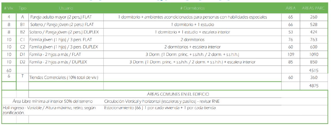 Representación Arquitectónica IV Arq. Carlos Omar Oquendo Ramirez Docente: Portafolio de articulación académica Proyecto arquitectónico: Fecha: Escala: 12/12/2022 sin escalar Mg. Arq. Jhonny Montalván Silva Docente: Cerna Rios Nayeli Tarrillo Huaman Jorge Luis Estudiantes: Contenido: VIVIENDA COLECTIVA SOCIAL PROGRAMA ARQUITECTÓNICO + ZONIFICACIÓN 08 Taller de proyectos arquitectónicos IV ACCESIBILIDAD ÁREAS VERDES #viv TIPO USUARIOS DORMITORIOS AREA AREA PARC