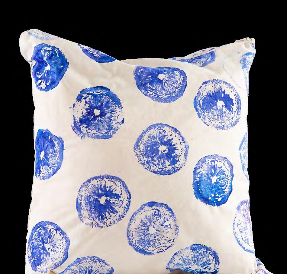 • A bag, tote or cushion enhanced by machine and hand process using fabric printing