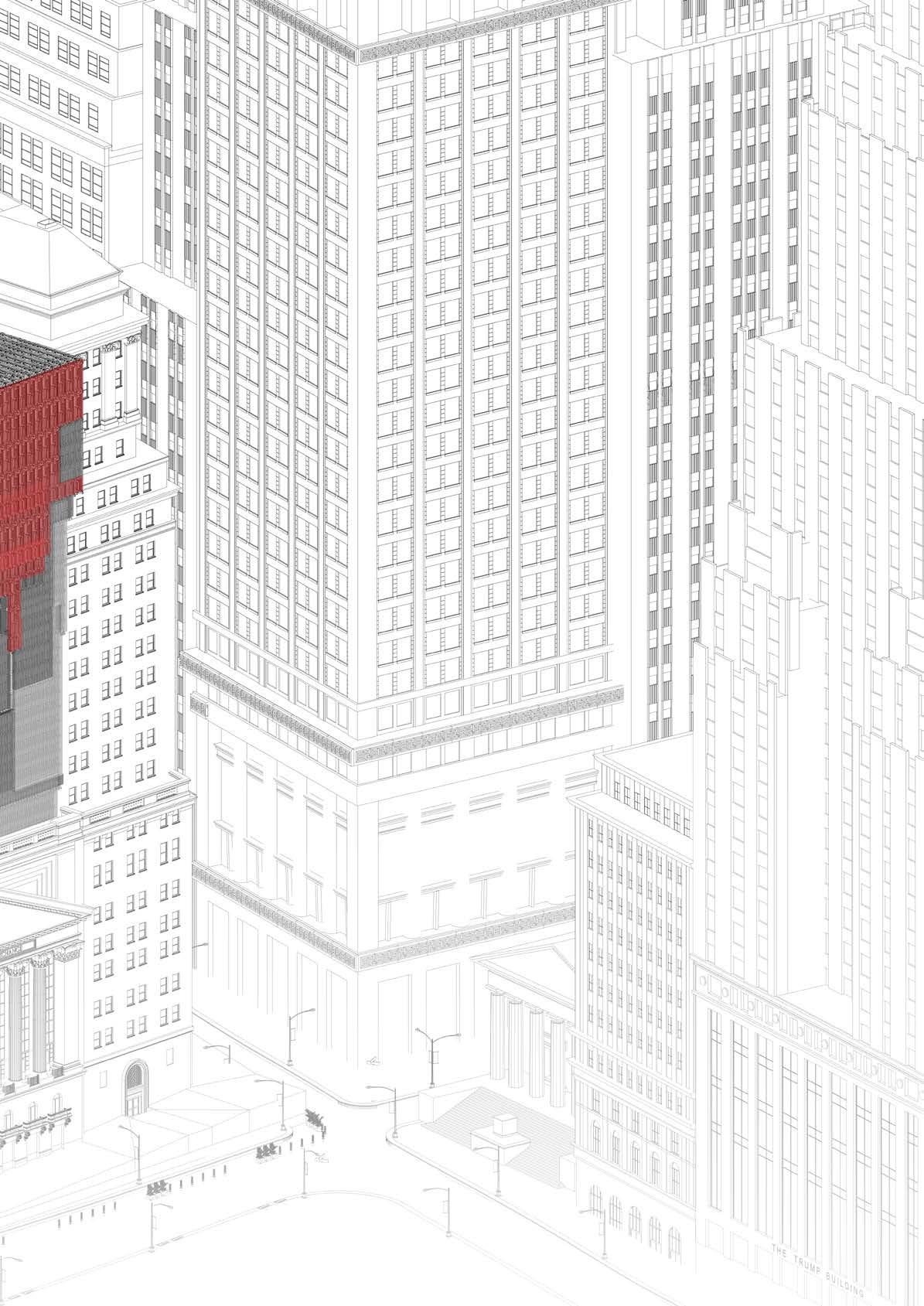 Our work is a vision of the future, a vertical extension of the New York Stock Exchange (NYSE), a presentation of the innovation required by the changing dynamics of the world. Designed to cater to growing nonhuman life, where more than 80% of the structure is dedicated to servers and mining machines The NYSE, already a center of the global economy, takes a step into the future. Transcending mere aesthetics and functionality; it becomes a powerful force. One which fully integrates humanity with the digital environment. Therefore, this project highlights the role of design as an agent of change, moving beyond traditional human-centered perspectives toward new methodologies. Grounded in a deep understanding of both human and nonhuman elements, it shows humanity’s adaptation to a world thats more than human. Our goal was to shift from a purely human-centered approach to one that is more inclusive and adaptive, reshaping coexistence between all constituents.