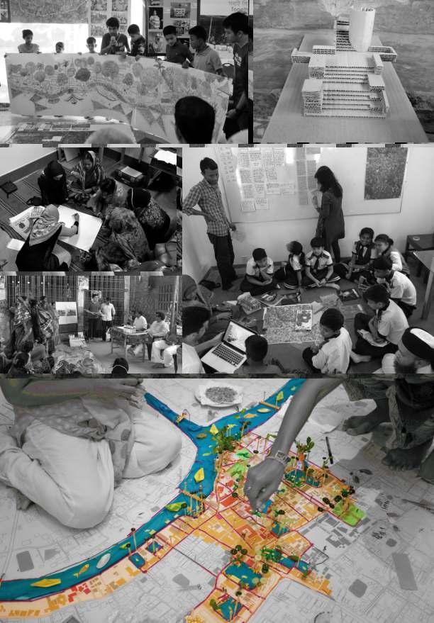 The long term vision is to protect 5 kilometers of riverside from encroachment and pollution through connecting the riverside communities and developing required public open spaces for the communities or the whole city This 'required' public spacewillvaryfromcommunitytocommunity Itcan be a communal bathing space, a collective garden or a water garden dedicated forbiological treatment of wastewater etc. Incorporat ng public open space protects the public water bod es from illegal privatization through communal surveillance . In addition,thewastewatertreatmentbeforereleasing city's runoff and household wastewater to surface water bodies can be more controlled and effective Beside this, protecting and re-designing the small waterbodies to make them accessible and developing people friendly streets throughout the city are other long time goals.When people become aware of their rights and have right information in theirhand,anythingcouldbepossible.