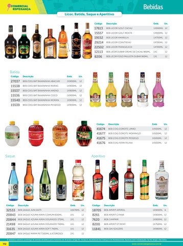 Bebidas Licor, Batida, Saque e Aperitivo Código