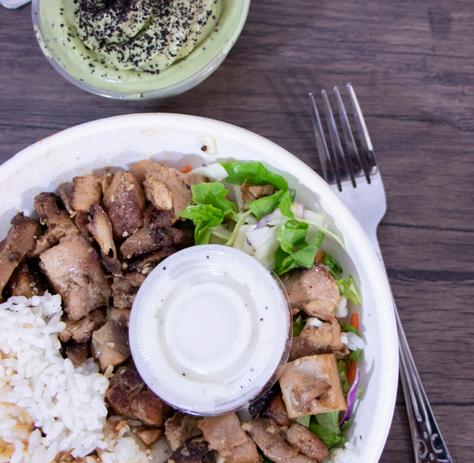 The first time I went to 10Q, I was slightly disappointed with the Katsu bowl I ordered. The bowl was filled with pankofried chicken breast pieces, katsu aioli, white rice and greens, but the rice took up too much real estate in the bowl and the dish initially seemed bland. Drizzling the white aioli sauce made an ordinary dish feel more substantial, and the creamy sauce paired with the panko-crusted chicken created a new twist on comfort food. I visited again and got the Korean BBQ bowl, which features barbecue chicken and the same accoutrements as the Katsu bowl, and was pleasantly surprised by its unique kick of flavor. I preferred the Korean BBQ bowl to the Katsu, but the matcha soft-serve with Oreo powder was my favorite part.