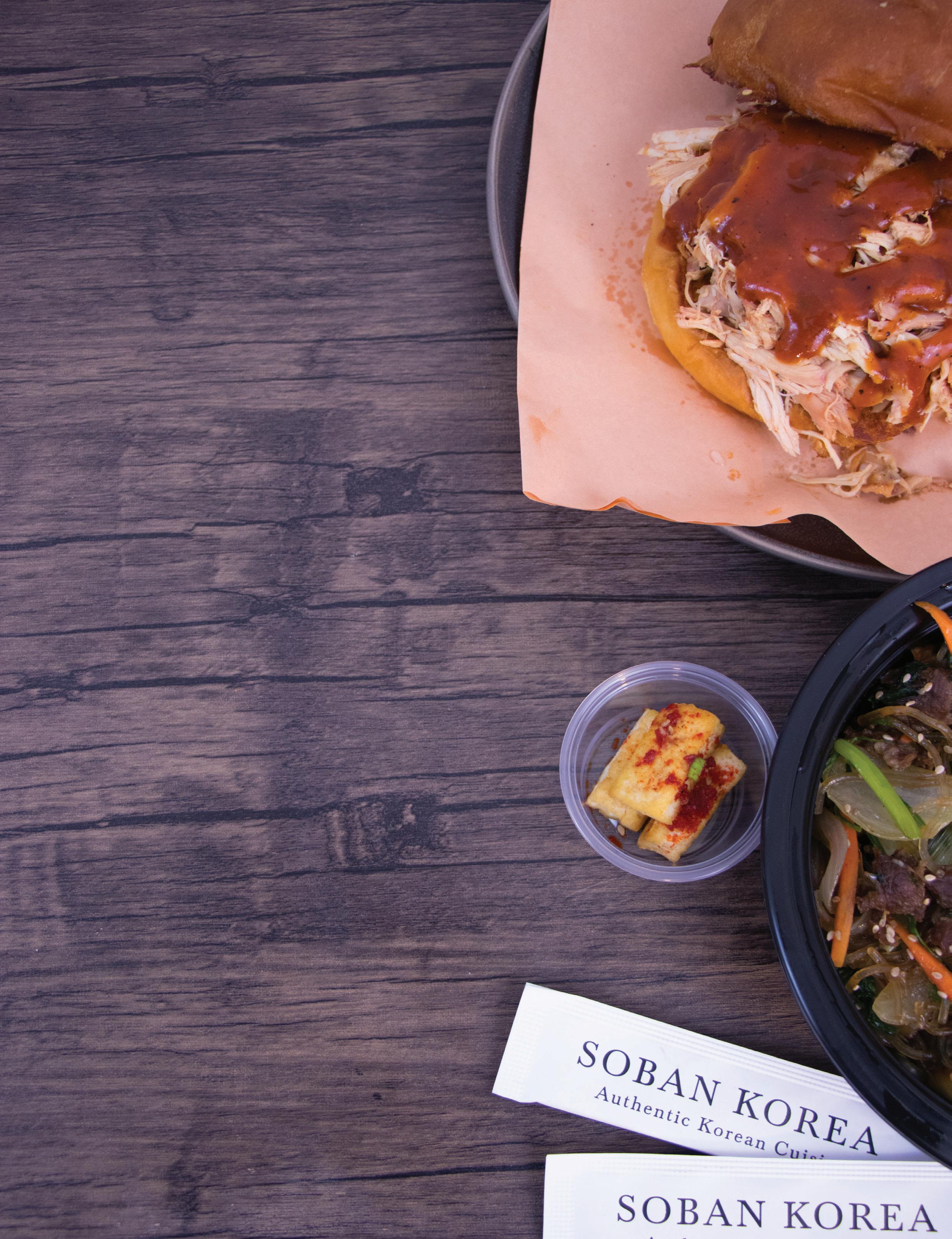 Just west of campus, situated by D&D Finer Foods, is Soban Korea. The restaurant's rustic brick walls, stained glass light fixtures and wooden, roomy booths create an atmosphere more formal than the other two spots I visited. Additionally, the comfortable booths provide an energy that is simultaneously relaxing and therapeutic; Soban Korea is perfect for rewarding yourself after a long week of classes. The menu offers appetizers like dumplings and small dishes of noodles, a comprehensive selection of soups, fried food, rice, barbecue and stir fry. Price-wise, almost everything is under $15.