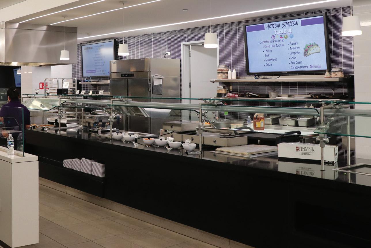 Tucked on the third floor of the Walter Athletics Center, Nona Jo’s serves daily breakfast and lunch exclusively for Northwestern’s Division I athletes. Rows of stations contain hot meals along with staples of an average Northwestern dining hall such as salads, fruit and a sandwich station. Past the buffet is an expansive seating area surrounded by floor-to-ceiling windows that overlook the lake.