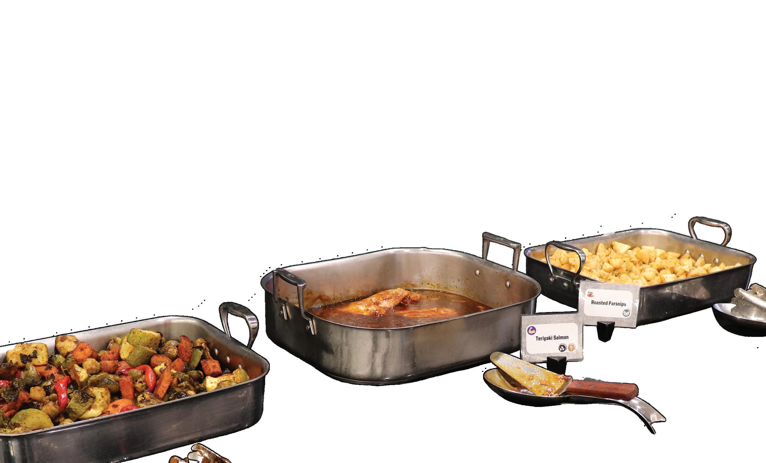 Sitting with a few of their teammates from the Northwestern swimming and diving team, Weinberg fourthyear Markie Hopkins and McCormick first-year Malachi Cohen praise the dining hall’s salmon. Teriyaki salmon,