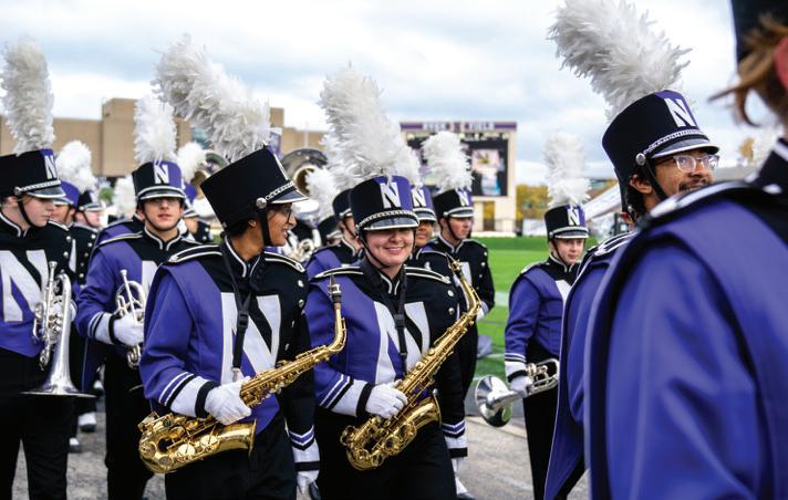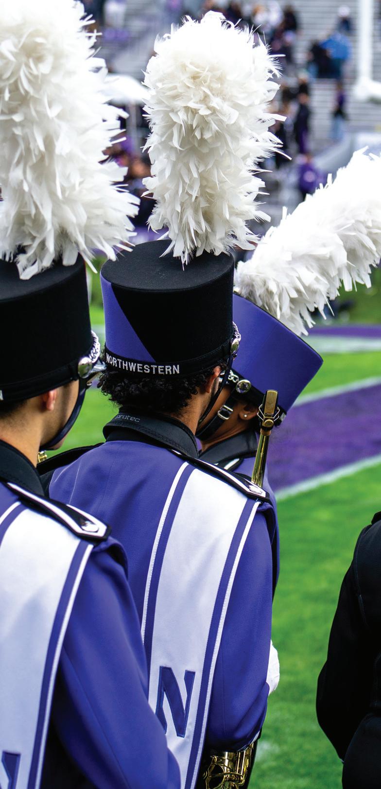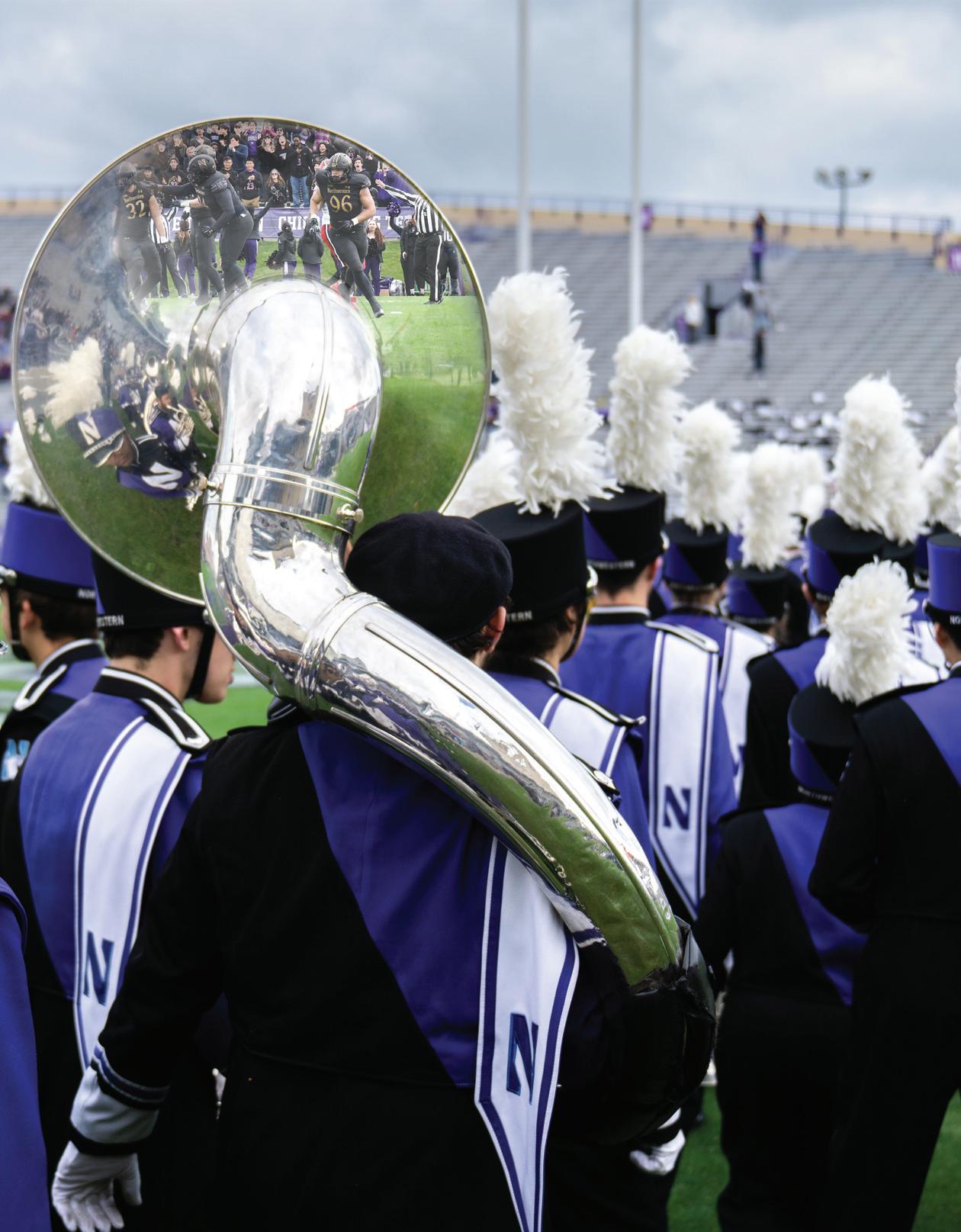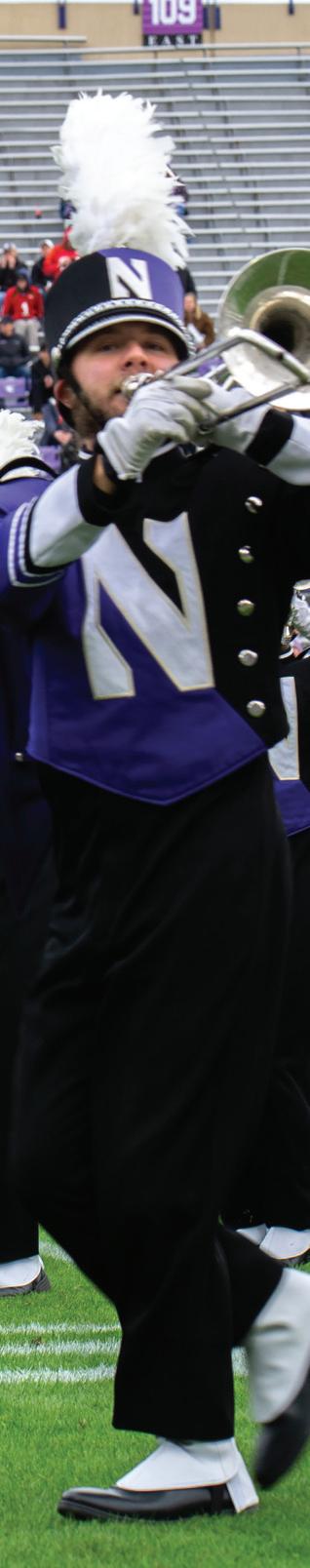 You’ll notice cool tones dominate this issue. The pops of warm colors at the beginning of the magazine gradually fade out until all color disappears in the black-and-white cover of our photo story, “Banding together,” a feature on the Northwestern University Marching Band. We highlight this o en overlooked group and ask how it feels to be cheering for a team that experienced such a dark episode. The band’s thoughts on who they truly root for may surprise you.