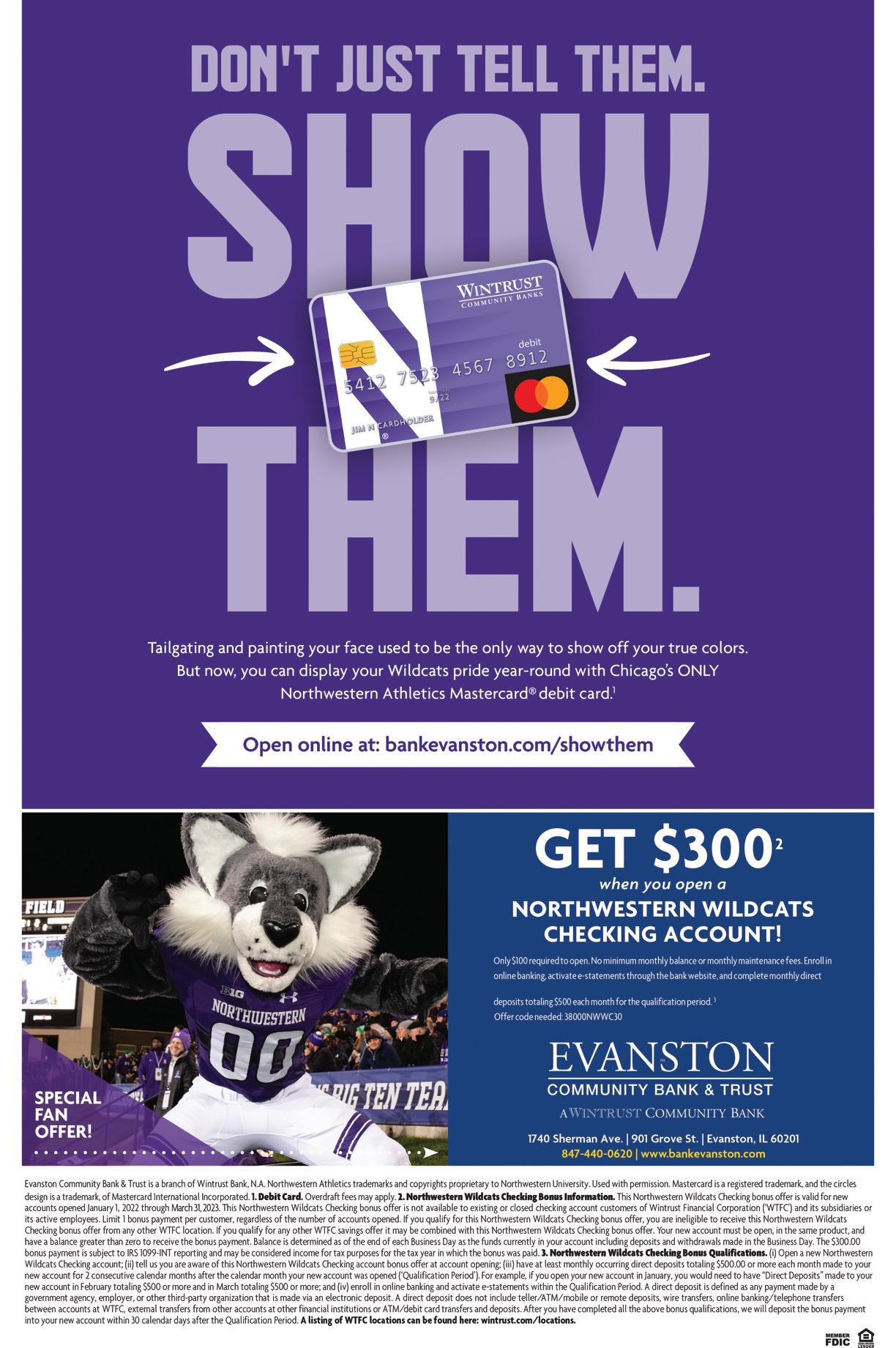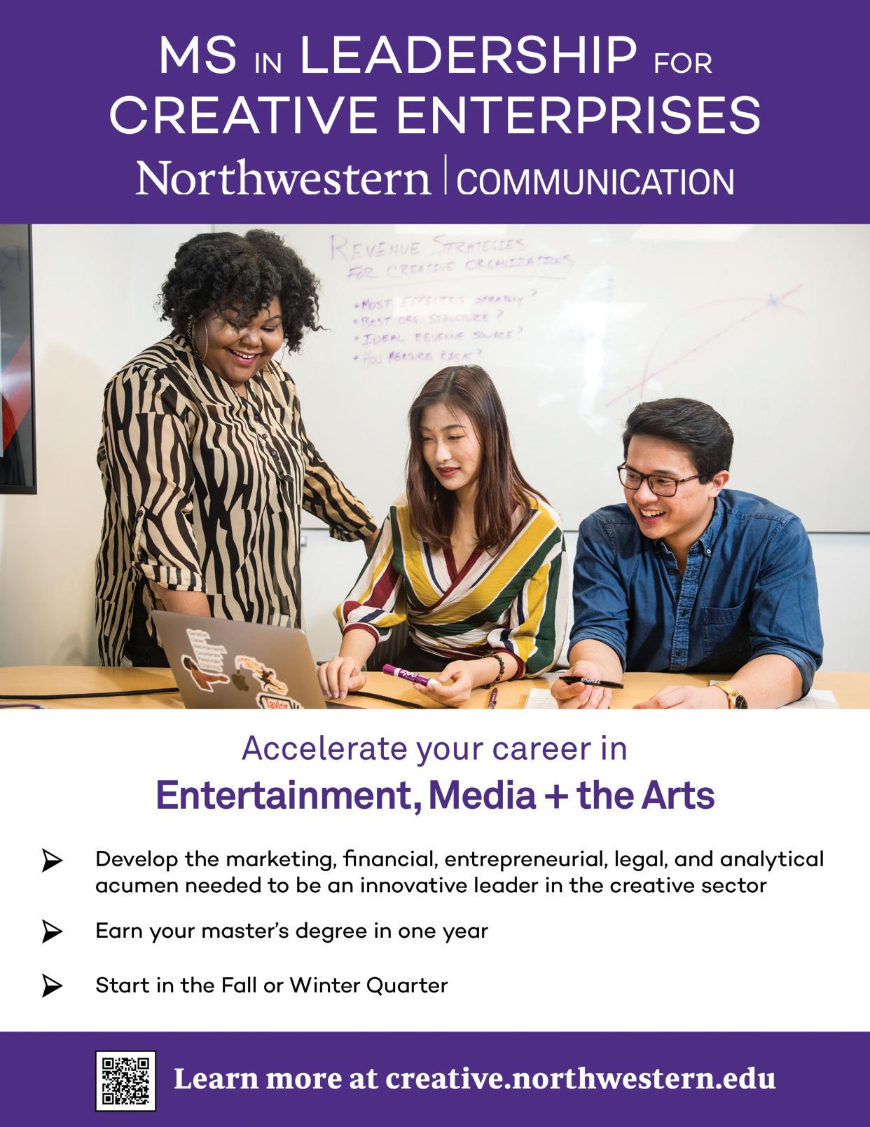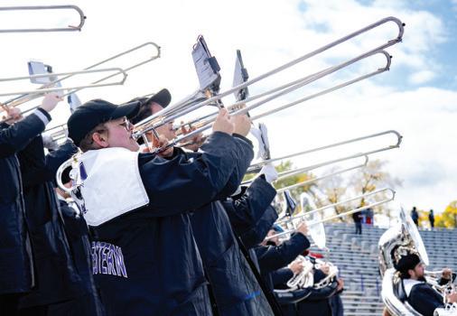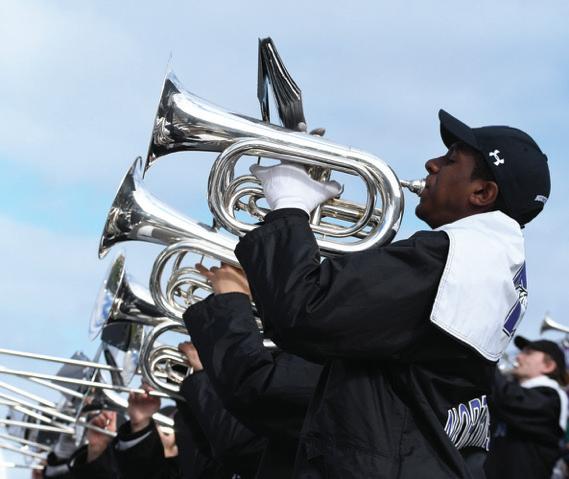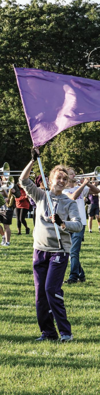 You’ll notice cool tones dominate this issue. The pops of warm colors at the beginning of the magazine gradually fade out until all color disappears in the black-and-white cover of our photo story, “Banding together,” a feature on the Northwestern University Marching Band. We highlight this o en overlooked group and ask how it feels to be cheering for a team that experienced such a dark episode. The band’s thoughts on who they truly root for may surprise you.