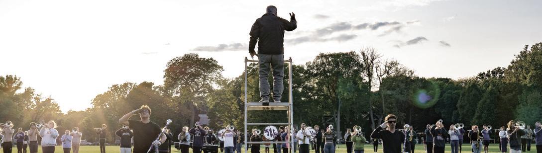 This trend is present in Northwestern’s band as well. After watching the current students carry on the band’s spirit during practice and from the sidelines of the games, alumni returning for Homecoming weekend joined the band and performed again. Farris says seeing how the experience of marching band sticks with alumni is one of the most rewarding parts of his job.