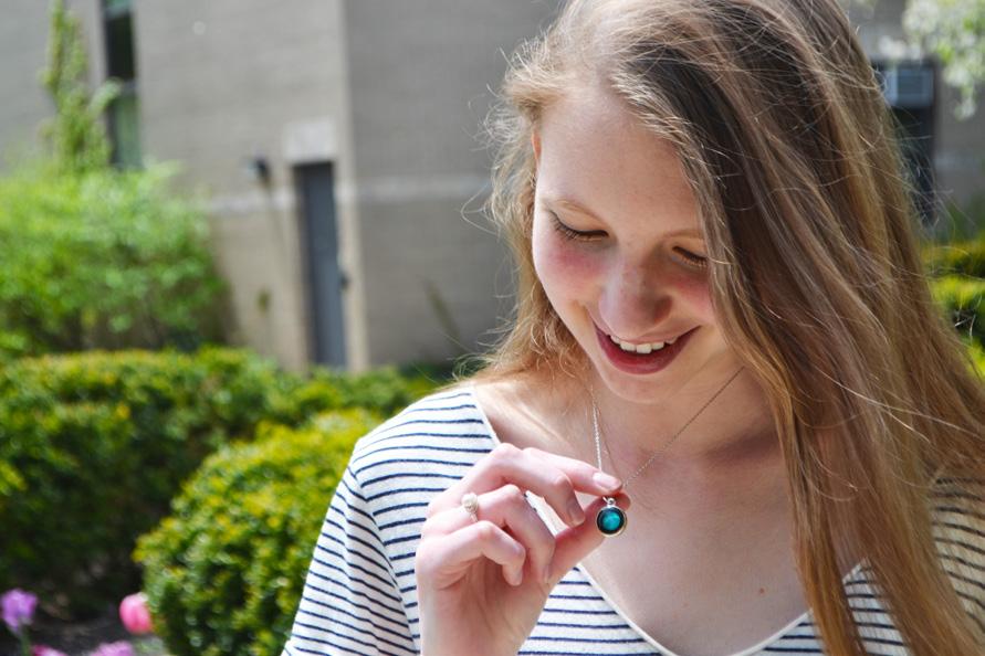 “My boyfriend got me this necklace for Valentine’s Day. It has a moon on it that’s the same phase as the moon on the date that we started dating, and it glows in the dark.”