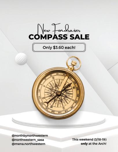 North by Northwestern, the South Asian Students Alliance and the Middle Eastern North African Student Association will be selling compasses for $3.60 during the last weekend of Winter Quarter. Their table will be at the Arch, so head south to make sure their fundraiser doesn’t!