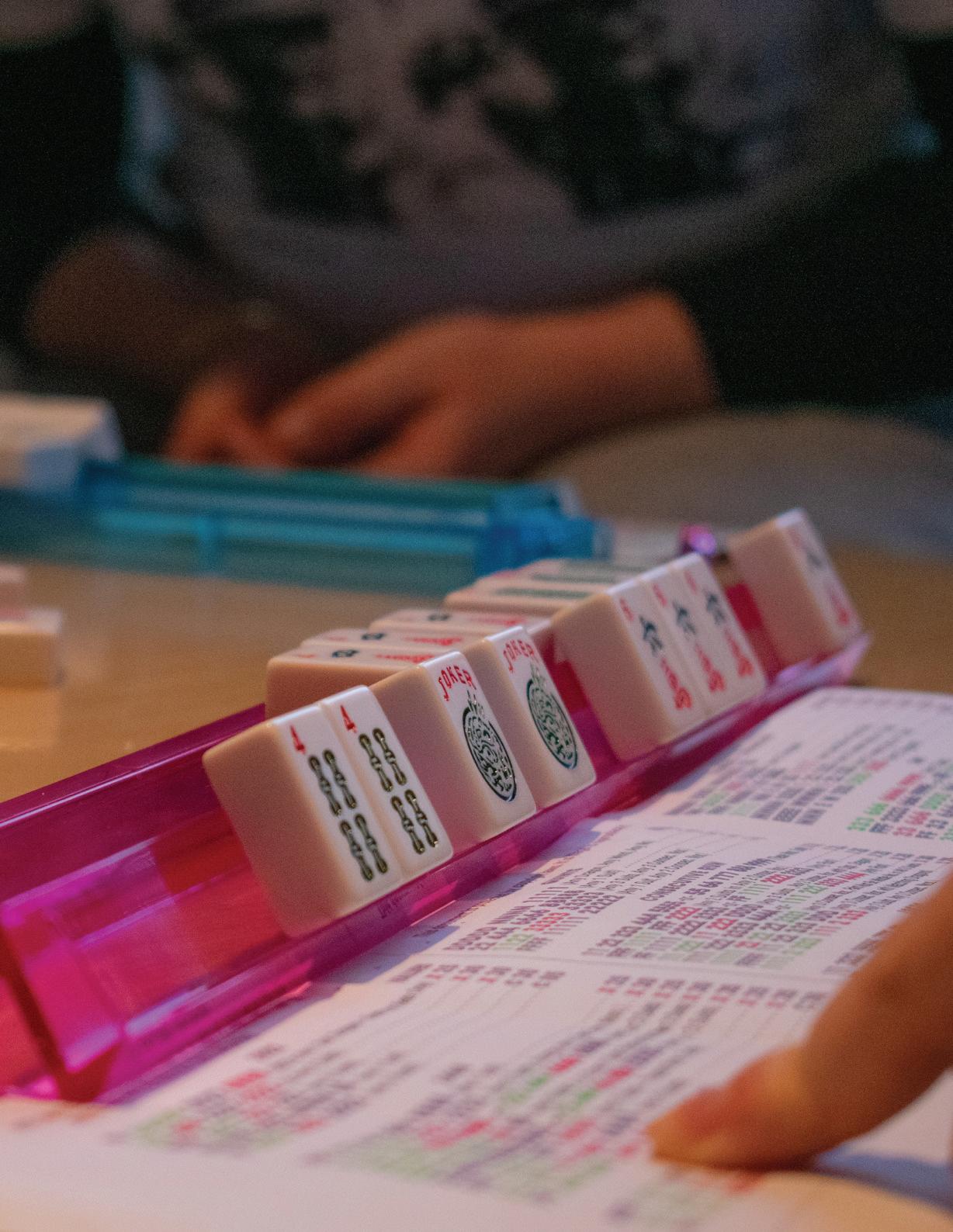 At around 6:30 p.m., the nal round of mah-jongg draws to a close. The participants pack up their tiles, gather their belongings and leave to go about their evenings. Nearly all will be back next week to continue the tradition.