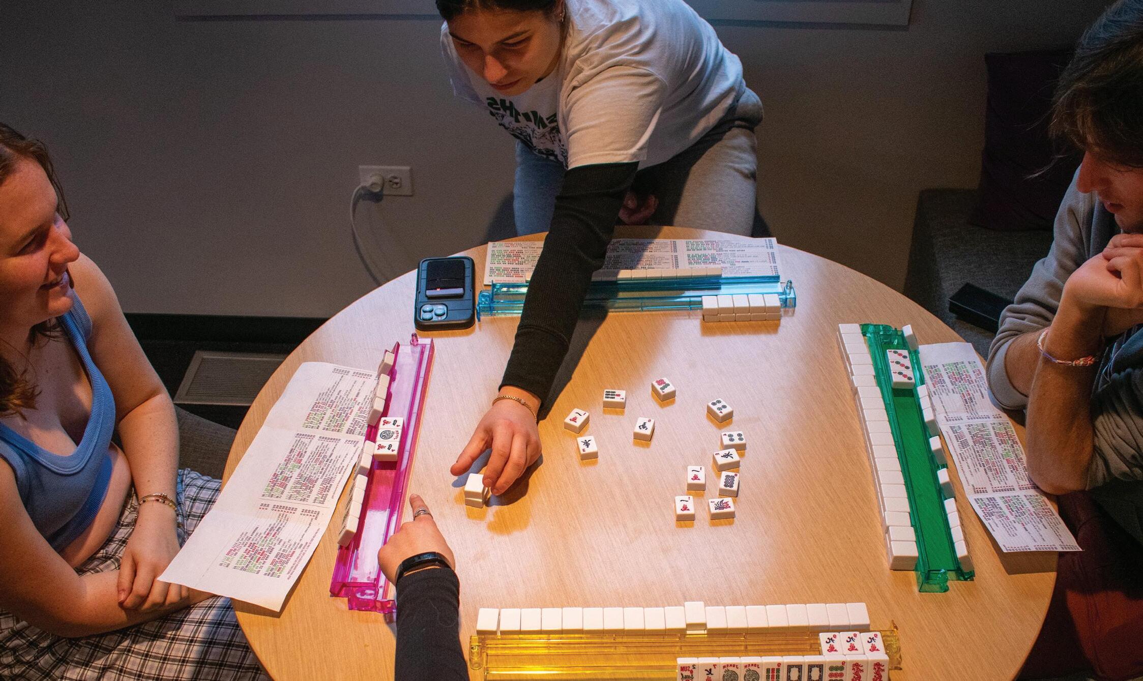 IIt’s 4:30 p.m. on a Sunday, and two students are dragging tables to the middle of the basement in Northwestern Hillel, the center for Jewish life on campus. As students seat themselves eight to a table, one retrieves a canvas bag and pours out an array of red-and-green-printed tiles. Passing around a Cheez-It box, a game of mah-jongg begins.
