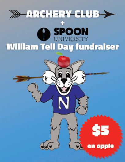 Join Archery Club and Spoon University for their annual William Tell Day fundraiser! Come learn about the Swiss folk hero and put yourself in imminent danger. Pay $5 to put the apple on your head or $10 to put the apple on someone else’s. Bows and arrows are provided. Participate at your own risk (or a friend’s)!