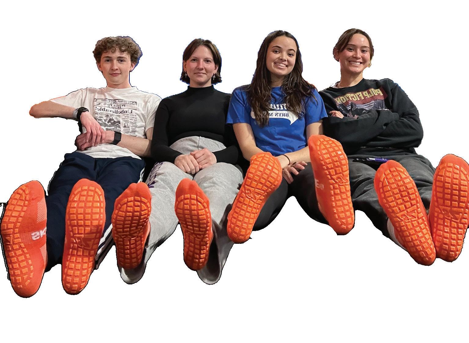 Hangover editors show of their grippy socks.
