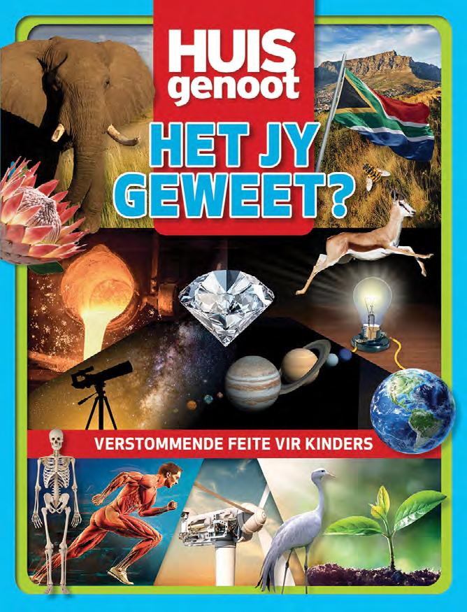 Huisgenoot se gewilde Het jy geweet?-reeks bied sedert 2017 interessante inligting vir kinders én hul ouers en het ’n betroubare bron vir skooltake geword. Vir die eerste keer is daar ’n versameling van onderwerpe beskikbaar. Vind alles uit oor ons pragtige land Suid-Afrika: ons amptelike landstale, die simboliek van ons landsvlag, ons erfenisgebiede en nasionale simbole, die Groot Vyf, ons besonderse plantegroei, en ons land se handel en nywerheid. Kom leer saam oor die voedselketting, fotosintese, die watersiklus, elektriese stroombane en die periodieke tabel, en verwonder jou aan verstommende feite en infografika oor die planete, die melkweg, die aarde se lae, en soveel meer.