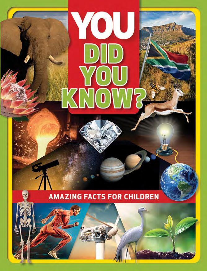 YOU’s popular Did you know? series has been providing interesting information for children and their parents since 2017 and has become a reliable source for school assignments. For the first time, a collection of topics is available. Find out everything about our beautiful country South Africa: our official languages, the symbolism of our national flag, our heritage sites and national symbols, the Big Five, our unique vegetation, and our country’s trade and industry. Learn about the food chain, photosynthesis, the water cycle, electrical circuits and the periodic table, and marvel at amazing facts and infographics about the planets, the Milky Way, the Earth’s layers, and so much more.